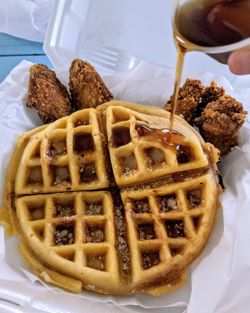 Big C Waffles – Big C Waffles takes the chicken and waffle dish to a whole new level and is known for the best waffles on earth! Big C started his business as a food truck back in 2014 a year after his father passed. He wanted to honor his father’s legacy and share his amazing waffles with more than just his friends and family. The brick and mortar location premiered in 2017. They have a walk up window to order and a covered patio to sit outside. They also have basketball hoops and other outdoor toys, as well as hosting Easter egg hunts to keep the kids entertained! Address: 2110 Allendown Dr. Durham, NC 27713