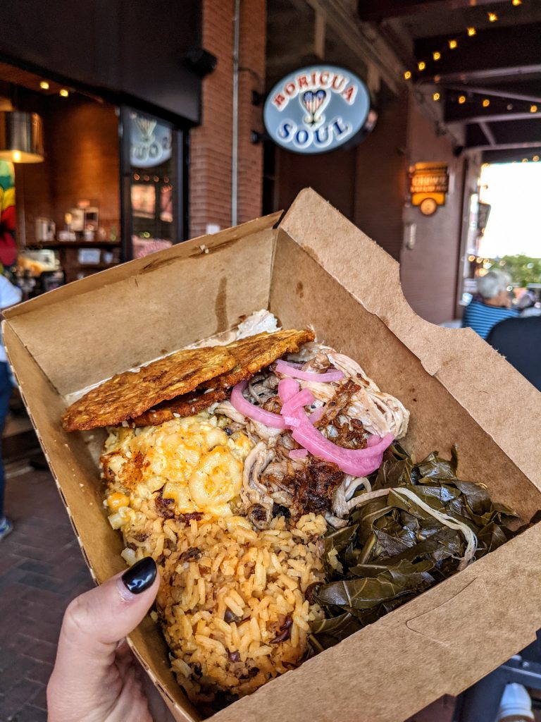 Boricua Soul – The name Boricua Soul is a combination of ‘Boricua’ named after the natives who live in what is today Puerto Rico, and ‘Soul Food’ a variety of cuisine popular in African American culture. When the owners, Toriano and Serena began living together, they started combining classic dishes they grew up with from both of their grandparents, and the idea for Boricua Soul was born. It started as a food truck, but they now have a permanent home inside American Tobacco Campus. My favorite item to order is the ‘Soul Bowl’ because you get a little bit of everything: Pernil (Puerto Rican Style Slow Roasted Pork) topped with pickled red onions, arroz con gandules, collards, mac and cheese, and tostones. Address: 705 Willard St. Durham, NC 27701