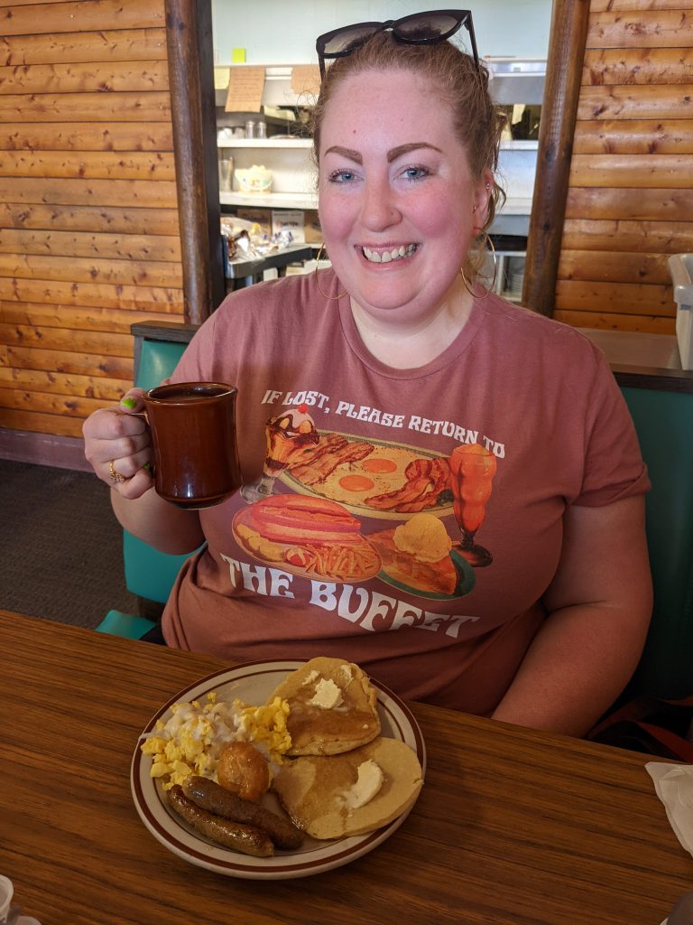 It has been a dream of mine to go to a diner at the beach, but it never worked out until this time. We walked by Log Cabin Pancake House the night before and I knew we had to go the next day. They have been open over 30 years serving up some of the best breakfast in VB. We all got the breakfast buffet- this was my first time eating at a buffet since the pandemic. The pancakes with whipped butter were to die for. My mouth is watering as we speak thinking about them. They also had french toast, biscuits and gravy, scrambled eggs, over-easy eggs, sausage, bacon, fried donuts, fruit- the list goes on and on.