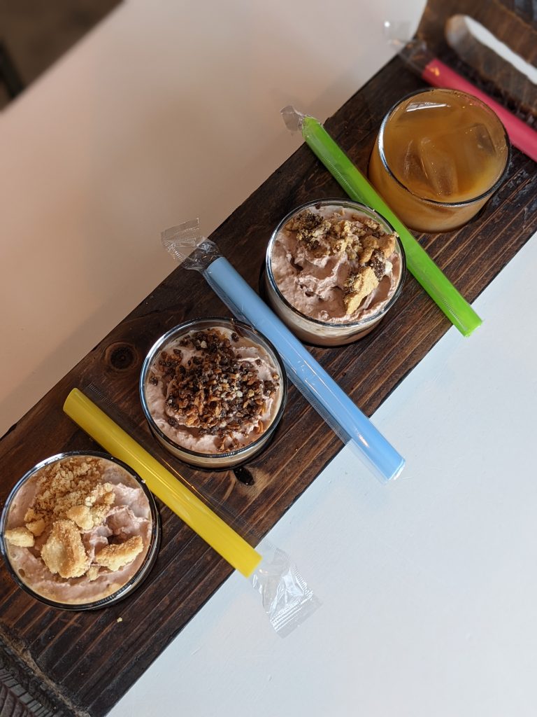 No matter where I go, I will always hunt down the best local coffee spots. We drove to Pour Favor for an afternoon pick-me-up. We all split their seasonal Girl Scout Cookie Coffee Flight, and then got a regular drink of our own. The shop was very cute and did a great job of being inclusive and making sure all its guests felt welcome inside.