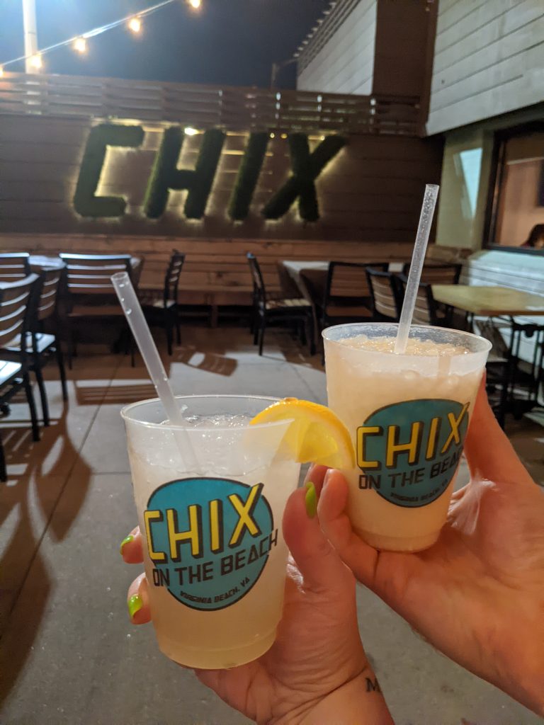 Chix On The Beach was recommended to us by our waitress at breakfast. If you didn’t get seafood, did you even go to the beach?! I was disappointed they didn’t have crab legs because I had my heart set on that, but their grilled shrimp made up for it. Kim ordered seared scallops so I tried those for the first time, and they were excellent! Phil enjoyed a crab cake sandwich. We also got fun beachy themed cocktails in souvenir cups. They have an amazing dog-friendly patio with an oceanfront view.